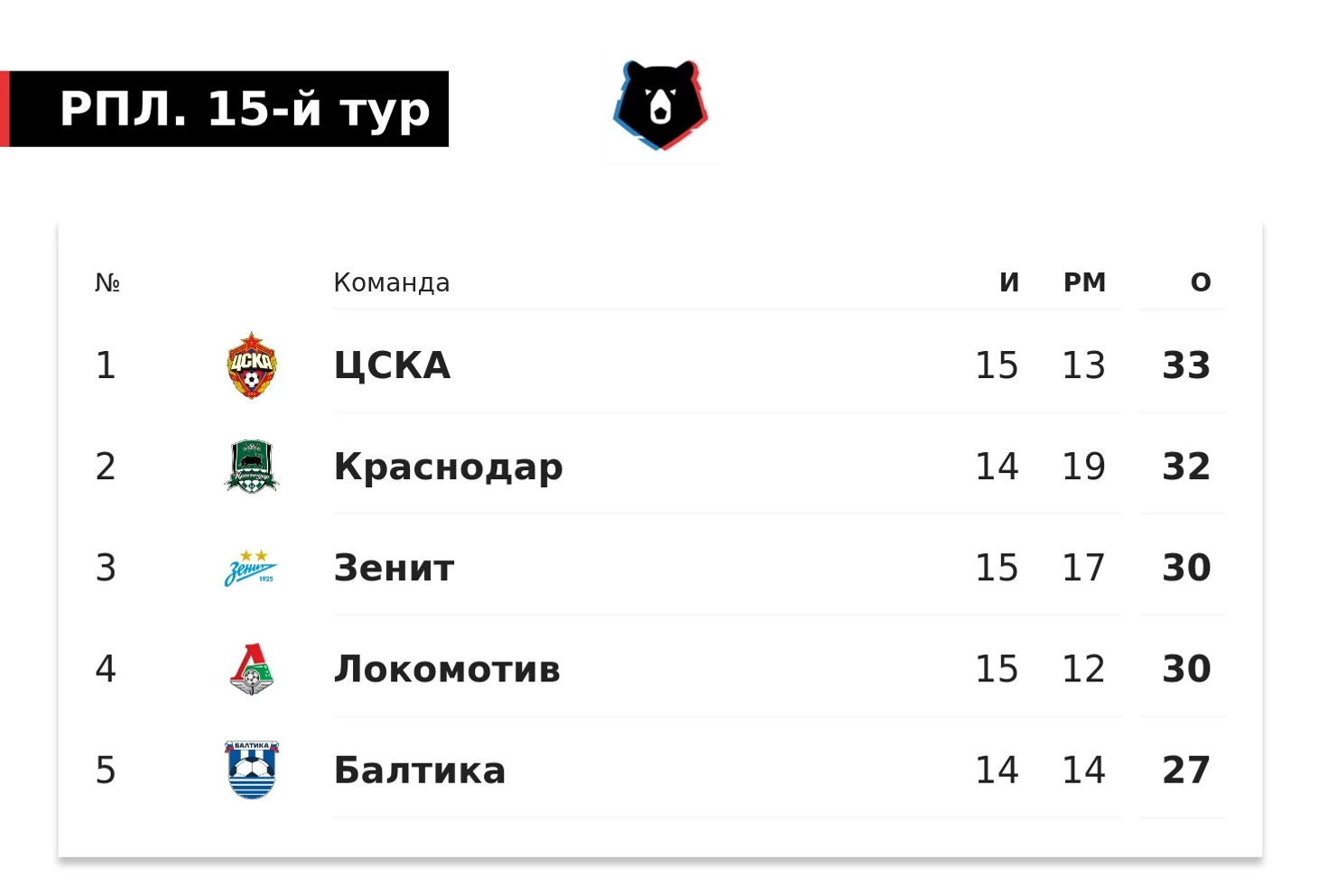 ● «Локо» пока на четвертом месте. Вровень с отступившимся в этом туре «Зенитом»: по 30 очков. ЦСКА опережает на три балла, «Краснодар» еще может оторваться, если возьмет очки с «Балтикой».