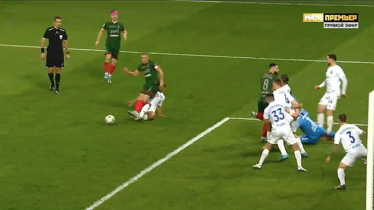 Через пару минут Цыганок назначил второй пенальти для «Локо» – теперь по делу. Николай Комличенко остроумно сбросил головой к вратарской, обыграл Чичинадзе и откатил назад. Фахд Муфи в подкате снес Дмитрия Баринова – потом Бакаев пробивал из штрафной, но попал в блок.