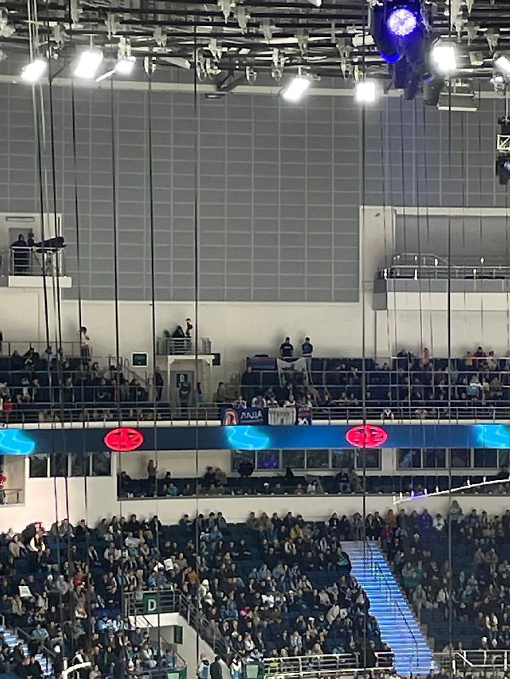 Выходим с футбольного стадиона и направляемся на арену для хоккея. Классный таксист привозит нас когда закончился 1 период. Пробиваем билеты. Ах, да. Пару слов о билетах. Снова Авито и снова молитвы перед входом, но все ок мы в арене. Средненький осмотр. Здесь уже все в руках стюардов. Бродим по арене. Наблюдаем за активом который подготовил клуб. Матч проходил в формате Караоке. Поэтому люди с голосом и без, от души и без исполняли разного рода хиты. В подтрибунке и в чаше арены звучали песни от Знаешь ли ты певицы Максим до Короля и шута. Случайным образом оказываюсь в середине очереди в фан шоп. Честное слово не хотел. Под шумок покупаю значок и удаляемся на наши места.