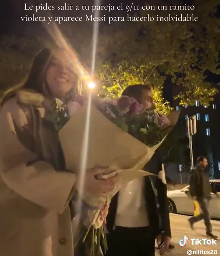 Вот еще потешная история: Парень подарил девушке цветы и снял ее реакцию на видео. Пересматривая запись, он увидел, как на фоне уверенным шагом куда-то движется Месси.