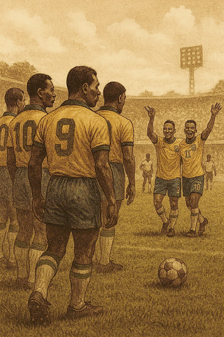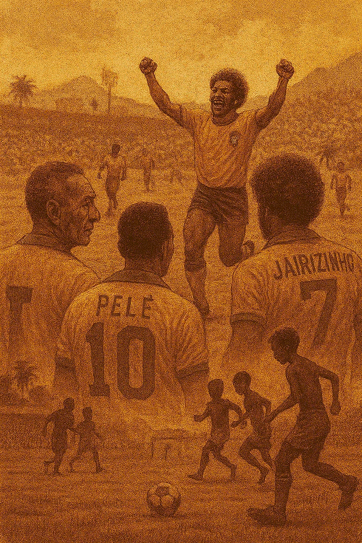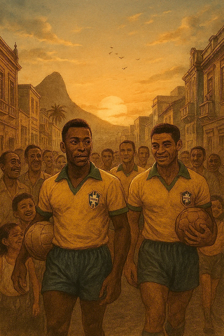 Эпоха бразильской импровизации 1958–1970 годов — это не просто история футбола, а история страны, культуры и людей, которые верили в мечту. Это рассказ о том, как бедный мальчик с носком вместо мяча стал королём футбола, как человек с кривыми ногами стал радостью народа, как команда индивидуальностей стала символом единства и красоты.