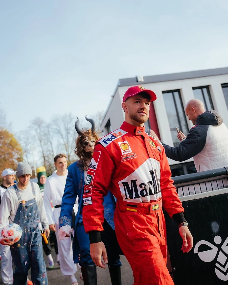 Полузащитник Ян Тильманн пояснил, что он не просто гонщик «Формулы-1», а конкретно Ники Лауда. Знаменитая кепка на месте!
