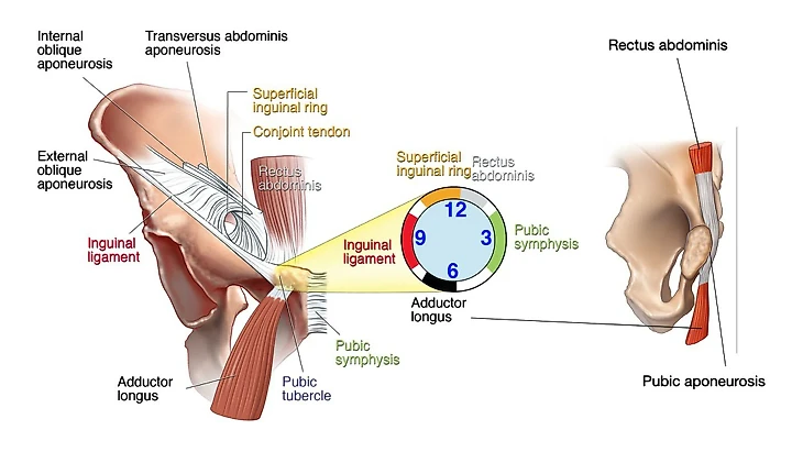 Главная особенность пубалгии – нет выпячивания, как при классической паховой грыже. Боль возникает из-за растяжения и микротравмы мышц и сухожилий, которые крепятся к лобковой кости.