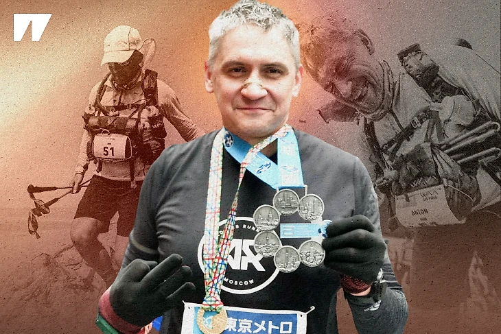 Он пробежал все семь главных марафонов мира (некоторые по два раза), сделал три полные дистанции Ironman (3,86 км плавания + 180,25 км езды на велосипеде + 42,2 км бега), дважды преодолел главный ультрамарафон мира The Comrades в ЮАР (около 90 км), а еще справился с Marathon des Sables – тот самый многодневный забег на 250 км в пустыне, в котором недавно участвовал Алексей Смертин.