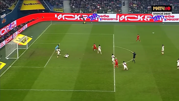 пропустившему блокировку Миранчука. Но это было до штрафной (защитник всем телом вне ее пределов), поэтому о пенальти речи идти не могло.