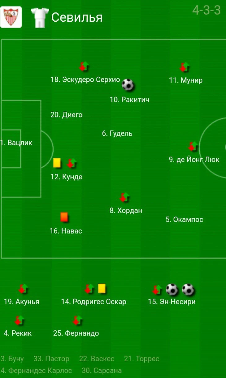 Состав же Севильи разнился с перевесом: играют Окампос, Жуль Кунде, Томас Вацлик, Люка Де-йонг, а также экс- полузащитник той самой «Барсы 2015 года» Иван Ракитич