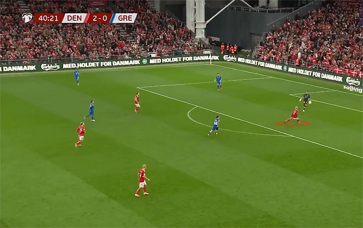 может выйти на левом фланге нападения у Дании (и выдать 1+1, между прочим),
