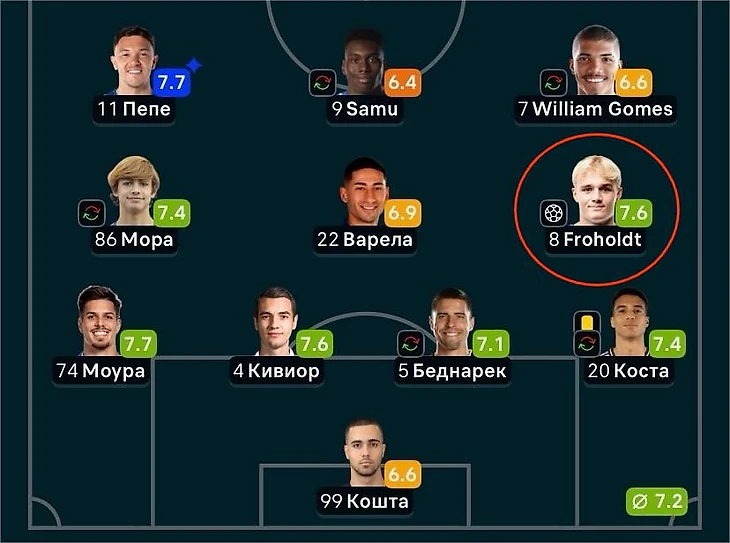 Фрохольд имеет рост 187 см, и только 3 игрока стартового состава «Порту» выше него. Именно поэтому Виктор постоянно находится в штрафной при угловых, и своих, и чужих. Вот, например, в матче с «Ноттингем Форест», датчанин взял на себя ответственность за удержание 195-сантиметрового Миленковича на угловом.