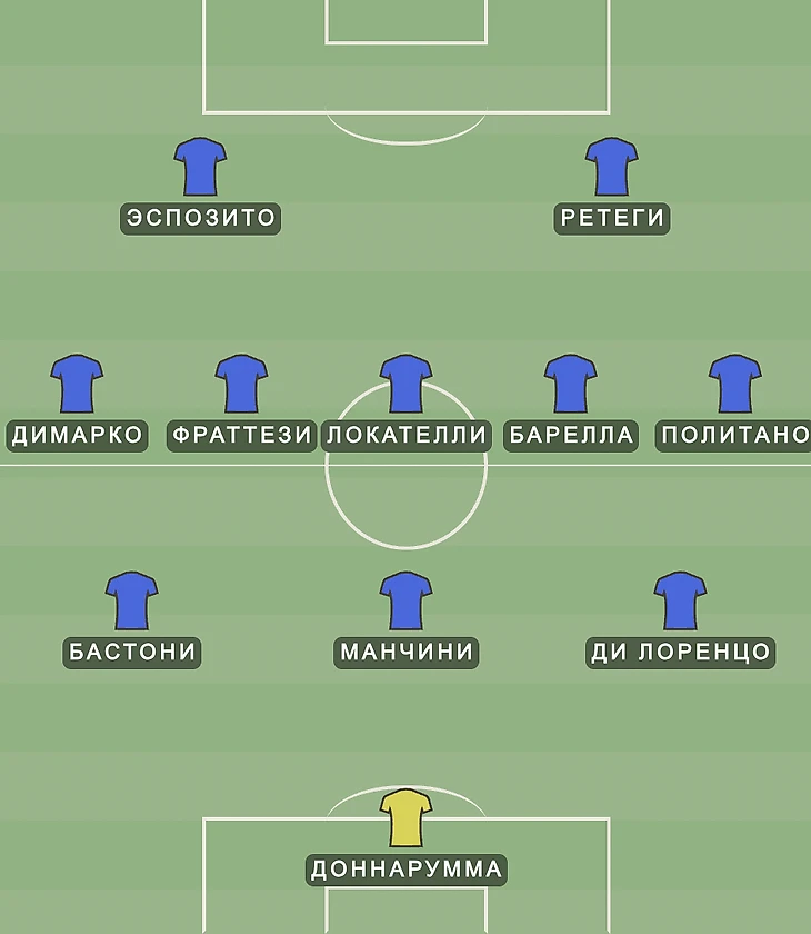 Место за дирижерским пультом может получить Кристанте и Риччи, Барелла вернулся после дисквалификации, а Сандро Тонали получит отдых, так как находится под угрозой пропуска следующего матча из-за перебора карточек. Опять кому-то в штабе «адзурри» не хватило сообразительности посоветовать защитнику получить в четверг «техническое предупреждение».