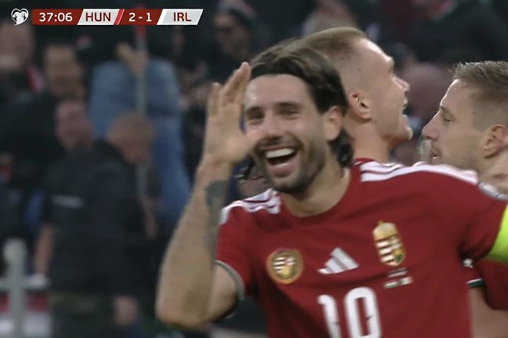 Собослаи радовался больше всех. И ярко праздновал гол перед ирландскими фанами, смеялся.