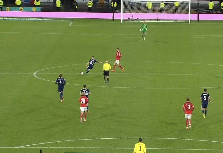 Однозначно лучший матч последнего дня отборочного турнира прошел в Глазго. Хозяева принимали датчан и нуждались исключительно в победе. По крайней мере, в отличие от целой россыпи прочих «вторых мест» (Италии, Турции и Косова) им не нужно было думать о набивании какой-то безумной разницы мячей – от первого места их отделяли всего два очка.