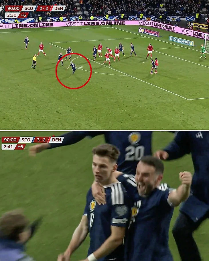 Сразу стоит отметить, что гол Мактоминея стал далеко не единственным украшением матча от британцев – 2 из 3 оставшихся своих голов шотландцы забили реально очень красиво. Но это всё было уже лишь в концовке второго тайма.