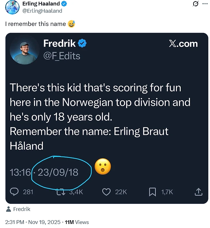 Холанд нашел старый фанатский пост о себе. Тогда о юном норвежце мало кто знал