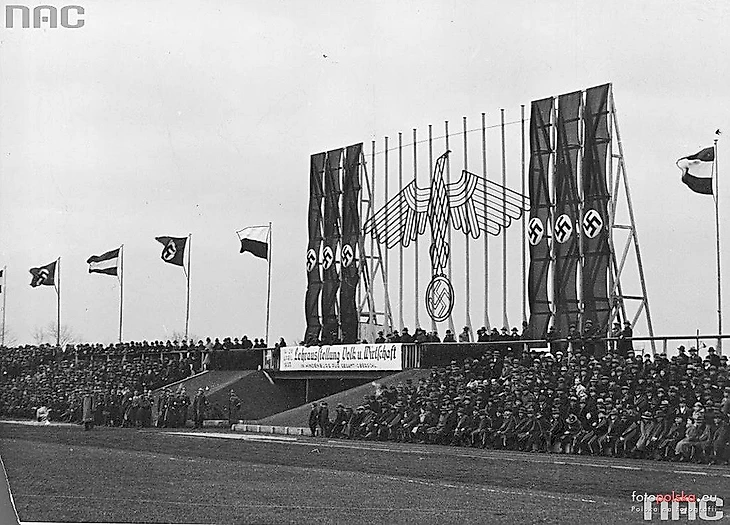 С первых дней существования новый стадион получил имя в честь Адольфа Гитлера. Во время нахождения города в составе Третьего Рейха стадион чаще использовался для проведения политических и партийных мероприятий, ни один футбольный клуб не проводил регулярно на новом стадионе свои матчи.
