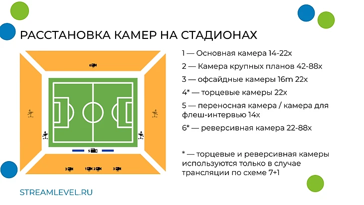 6* — реверсивная камера 22-88х (устанавливается на противоположной от основной, крупной и офсайдных камер)