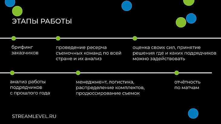 Второй вызов— количество подрядчиков, их логистика и обширная география проекта. Мы не впервые сталкиваемся с такой задачей, однако, если сравнивать опыт взаимодействия с РФБ (Российской Федерацией Баскетбола), с которой мы работаем достаточно давно, то отличие в географии становится очевидным. Ведь команды, участвующие в турнирах РФБ, для которых команда СтримЛевел производит трансляции, находятся в основном в европейской части России. В то время, как в Кубке России по футболу огромный разброс: с запада на восток и с севера на юг.