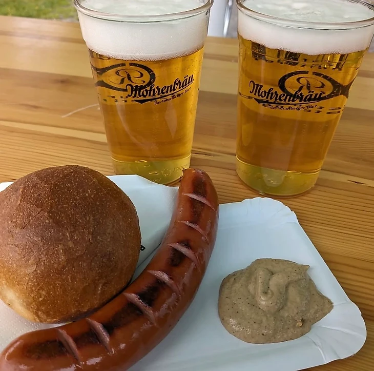 Пивко и горячая жареная колбаса всегда поджидают своих болельщиков. Ценник тоже вполне приемлемый от 3,50 до 5,00 евро.