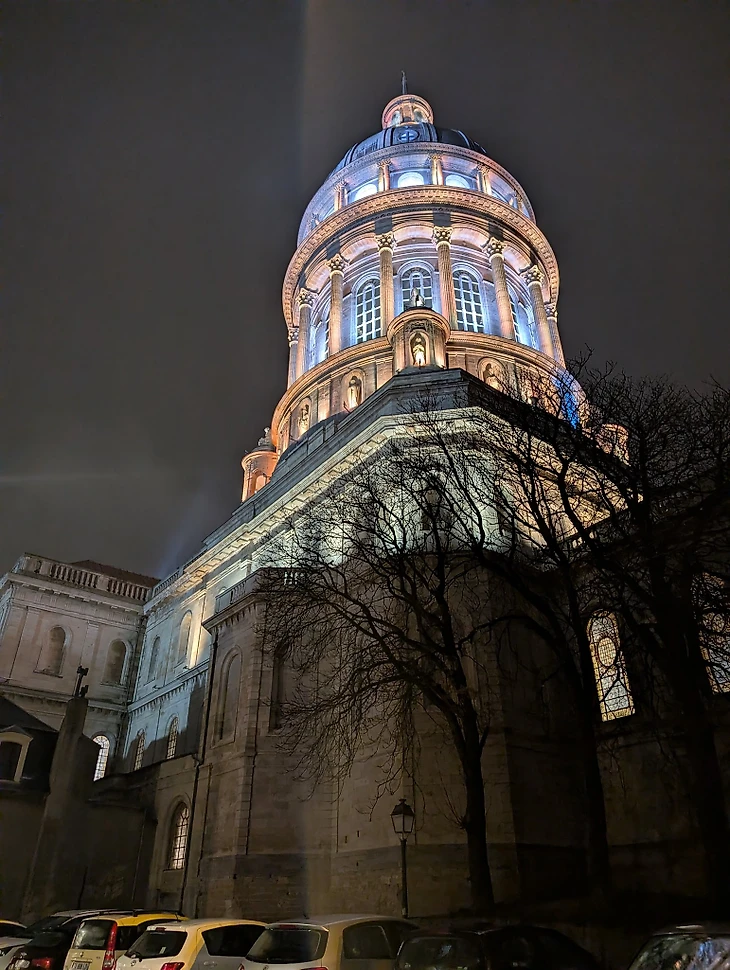 За дальними воротами, словно мальчишка заглядывающий через забор, виднеется 100-метровый купол базиликаты Нотр-Дам де Булонь-сюр-Мер, который доминирует в городском пейзаже.