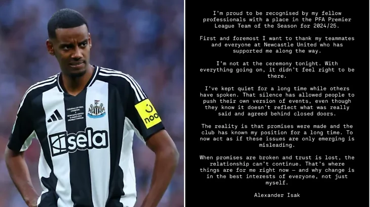 Важным моментом в саге имени Исака стал выход статьи The Athletic, которая объясняла такое поведение Исака в отношении «Ньюкасла». В материале сообщалось, что «сороки» еще по ходу прошлого сезона были неоднократно предупреждены — Алекс хочет покинуть «Сент-Джеймс Парк» по завершении кампании 24/25 и перейти в клуб, где он сможет бороться за самые престижные трофеи.