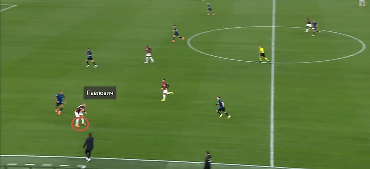 Также Рабьо мог оказаться на позиции Павловича, когда сербский защитник подключается к атаке, и, более того, отдавать передачу на Страхинью.