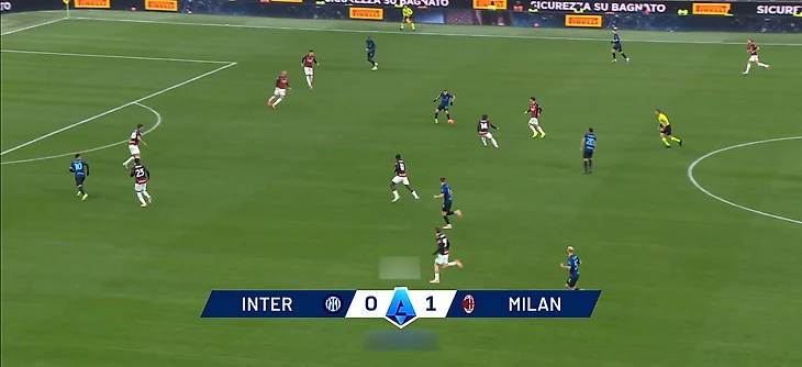 «Милан» в свою очередь пользовался (но не в полной степени успешно) известной слабостью «Интера» – игрой на дальней штанге. «Россонери» в своих контратаках любят использовать ширину, где переводят мяч в финальной стадии с фланга на фланг (на дальнюю штангу), что обнажало двойную уязвимость «Интера» – к контратакам и к игре на дальней штанге.