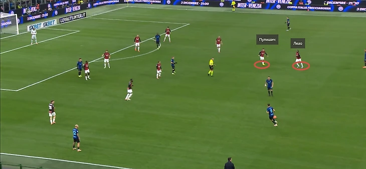 Пулишич и Леао перегружают одну зону в эпизодах, из-за чего некоторым атакам не хватает ширины или ориентира.