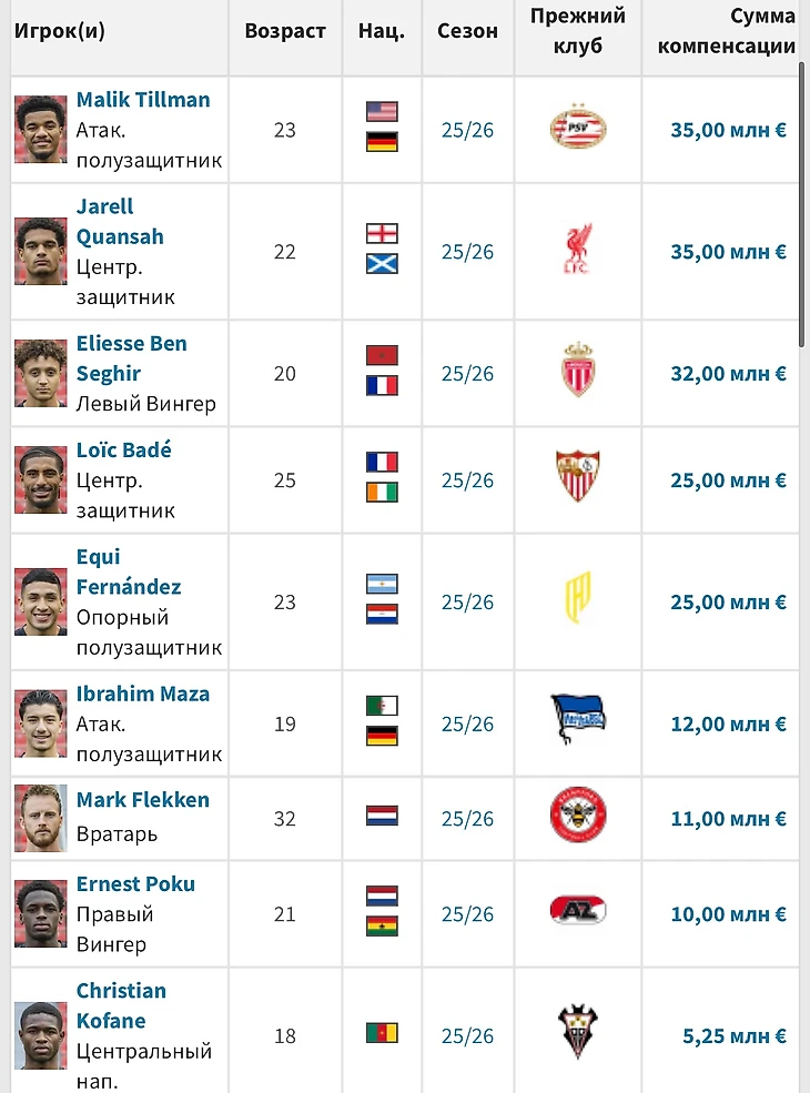 Хочется обратить внимание на Малика Тилльмана, который давно выделялся в голландском «ПСВ», а также Элисе Бен-Сегире, купленном из «Монако». Два талантливых игрока, которым в «Байере» будет легче развиваться, если подобрать хорошие условия, включая тренера. Марка Флеккена знают те, кто следят за АПЛ, в «Брентфорде» он довольно часто подтаскивал команду. Джарелл Куанса - перспективный защитник из «Ливерпуля», который сразу не прижился у Арне Слота, а Лоик Баде должен был подняться на уровень выше.