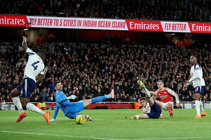 И когда на табло уже был счет 3:0, настоящий «скример» прилетел в ворота Давида Райи. Бразилец Ришарлисон отобрал мяч у опорника «Арсенала» Мартина Зубименди и забил гол сезона с 36 метров в самую девятку ворот «пушкарей», сделав счет 3:1.
