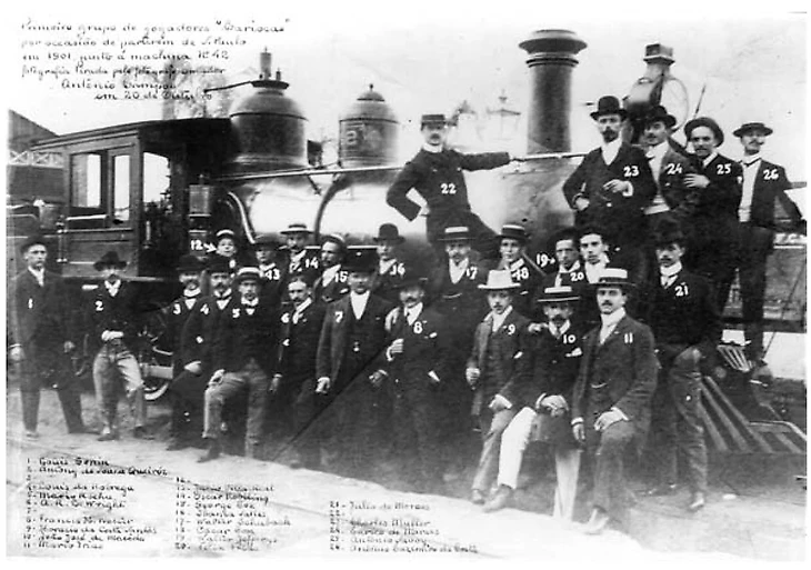Футболисты Рио прощаются с принимающей их стороной на железнодорожном вокзале Луз в Сан-Паулу после первых матчей между командами, представлявшими каждый город, в 1901 году