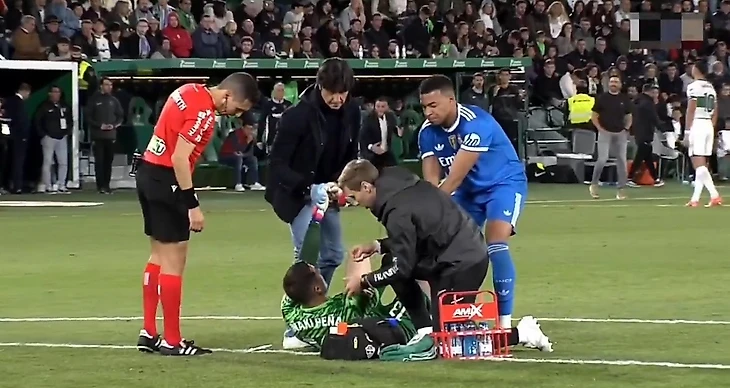 Пока врачи разбирались с Иньяки Пеньей, чей нос Винисиус в кровь разбил ногой в ходе голевой атаки, Килиан спорил с судьей: