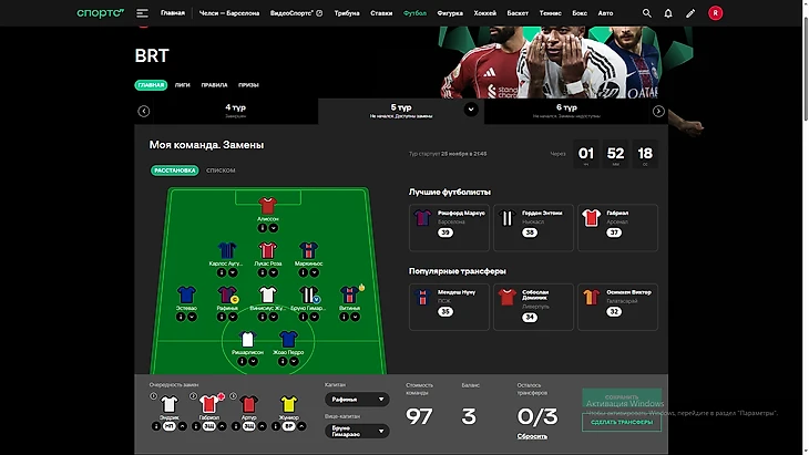 Привет, поклонники Лиги Чемпионов! Очень быстро об изменениях в моей «бразильской сборной» ЛЧ для нового тура. «Топы» поправляются, поэтому появилась возможность вернуть в ворота Беккера, выпустить в оборону Карлоса Аугусто и Рафинью в полузащиту. Посмотрим, поможет ли такая «мощная трансферая кампания» команде. Очки снова потрачены не все.
