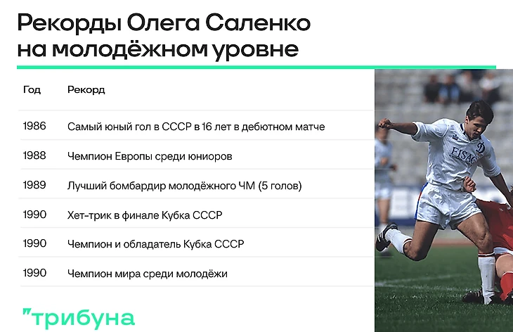В нашем реальном футболе таким бойким юношей был Олег Саленко, который к своим 20 годам уже имел нехилый такой багаж личных рекордов.