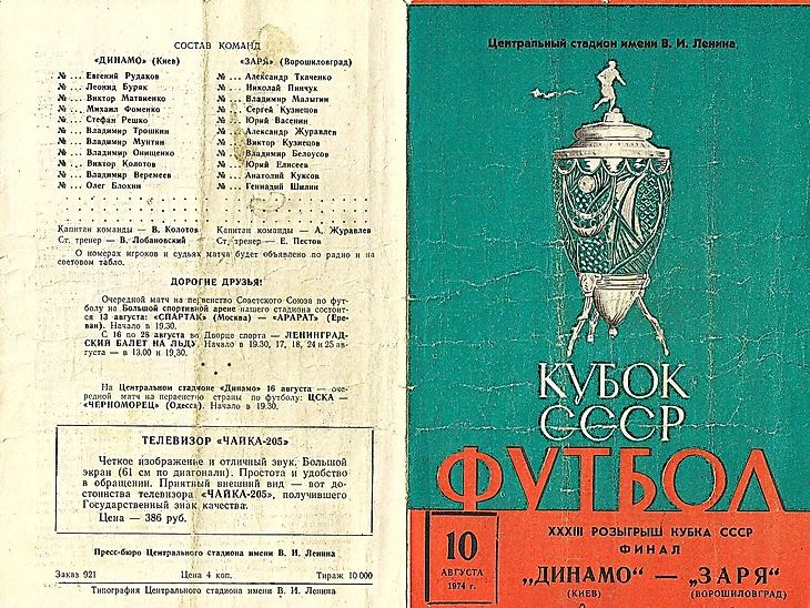 Динамо (Киев) - Заря (Ворошиловград). 10 августа 1974 года / Финал Кубка СССР