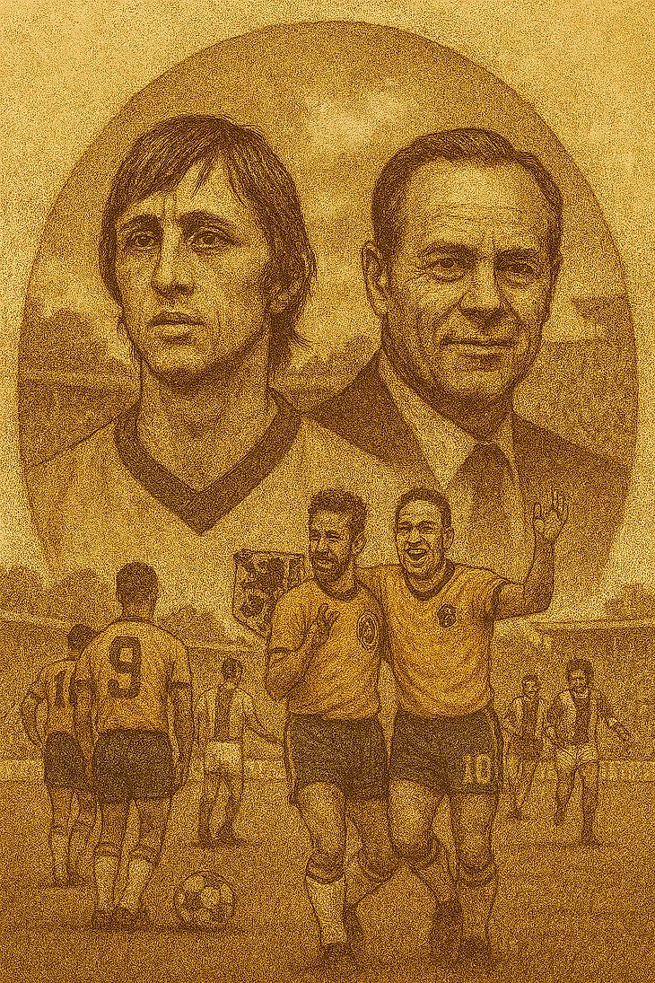 Тотальный футбол не родился в тишине архивов и не возник как мгновенная мода — он вырос из улиц, академий и строгих тренировок, из потребности сделать игру не просто эффективной, а осмысленной. В середине 20 века, когда мир футбола искал новые формы, два имени стали точкой отсчёта: Ринус Михелс и Йохан Кройф. Первый дал идее архитектуру, второму досталась роль её живого воплощения; вместе они превратили тактику в философию, а философию — в культурный код, который продолжает жить и эволюционировать.