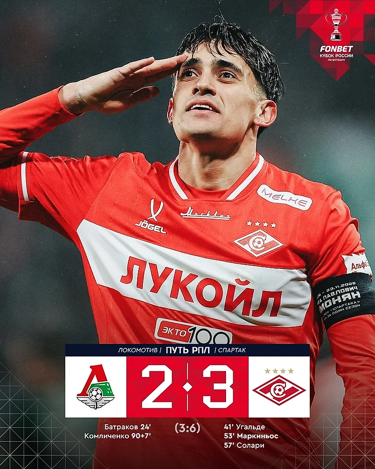 «Спартак» на выезде переиграл «Локомотив» в ответном матче четвертьфинала пути РПЛ FONBET Кубка России — 3:2.