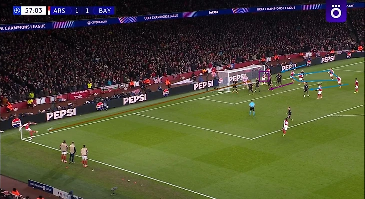 Коллектив Артеты из 13 ударов примерно половину нанес после угловых (в удобном формате), причем в классической для себя манере – из вратарской. Несмотря на адаптированность вариации “Баварии”: выстраивание в линию, гибридные роли, построение зонной опеки.