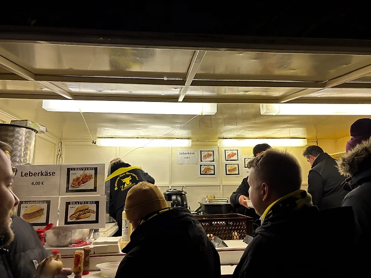 Некоторые палатки с едой выглядят очень аутентично. Есть полное ощущение, что госпожа Труда продает глинтвейн на матчах Боруссии не один десяток лет.