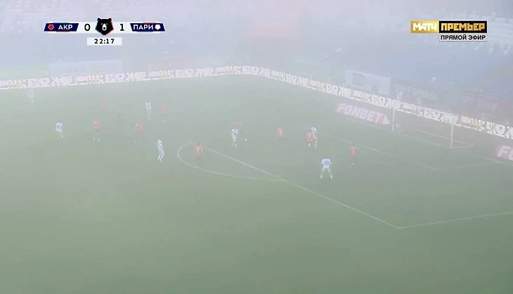 Впервые в этом сезоне РПЛ опробовали красный мяч – у «Акрона» и «Пари НН» (1:2). И дело даже не в снеге, а в плотном тумане.