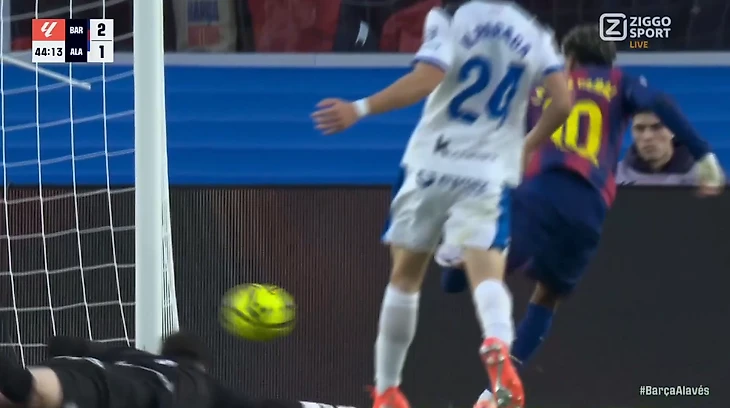 Под конец первого тайма Ямаль не реализовал момент, который в прошлом для него был бы очень легким. Испанец отыгрался в стенку с Левандовским, ворвался в штрафную, уложил движением вратаря, а затем не попал в пустые ворота.