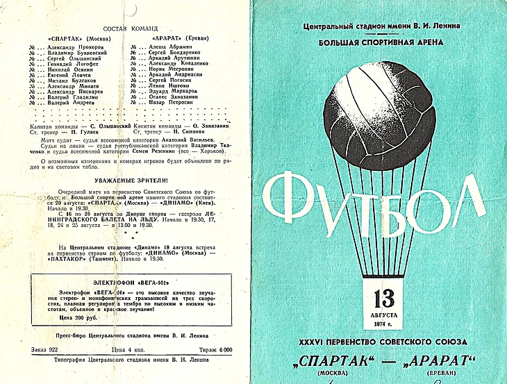 Но в последние годы спортивная слава «Арарата» затмила былые заслуги «Спартака». В прошлом году, как известно, ереванцы сделали «дубль», выиграв Кубок СССР и чемпионат страны. Правда, в текущем сезоне «Арарат» выбыл из борьбы за Кубок да и на сохранение чемпионского титула шансов практически у него нет. Однако команда вполне реально может претендовать на медали из серебра или бронзы, и уж, конечно, на место в первой пятерке.