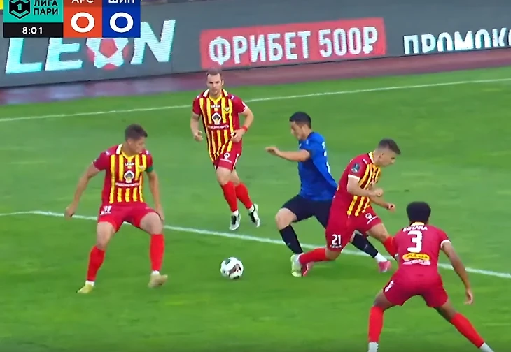 ЭСК: судья ошибочно не назначил пенальти в ворота команды «Арсенал». Игрок «Арсенала» Никита Раздорский выставляет ногу в сторону движения к мячу игрока «Шинника» Альбека Гонгапшева как шлагбаум и совершает подножку сопернику. Судье следовало назначить пенальти в данной игровой ситуации.