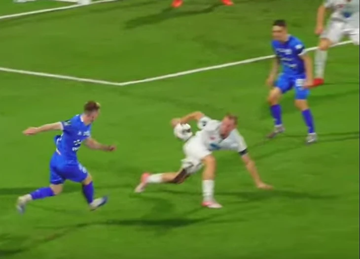 ЭСК: судья ошибочно назначил пенальти в ворота команды «Сокол». Защитник «Сокола» Иван Чуриков не нарушает правила против игрока «Факела» Николая Гиоргобиани, так как он совершает естественное движение в направлении мяча и не делает дополнительного движения в сторону соперника, контакт в ногах между игроками, ставший причиной падения атакующего игрока, инициирован самим нападающим.
