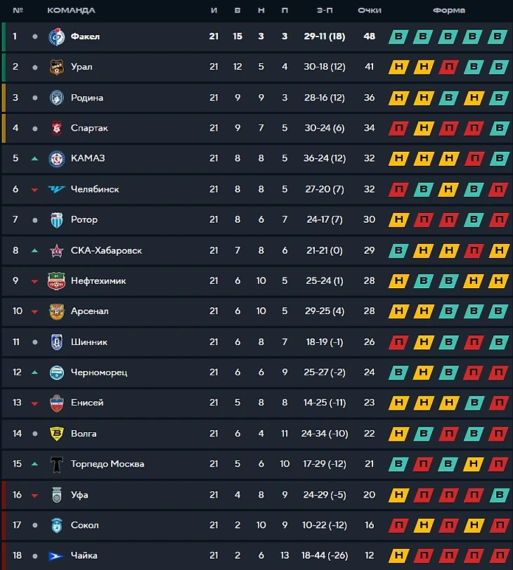 Топ-4 остается без изменений, хотя отрыв «Факела» от преследователей сократился. Так же сохранилось положение команд в зоне вылета. Небольшие перестановки наблюдаются только в середине таблицы.