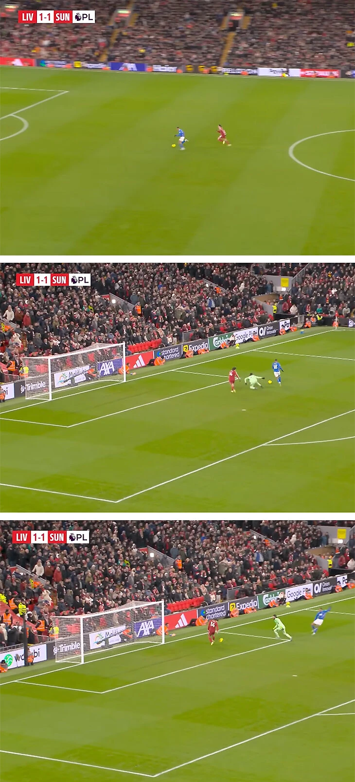 93:01 – Феде бросился за Вильзоном Изидором, побежавшим к воротам «Ливерпуля» с центра поля. «Сандерленд» обязан забивать.