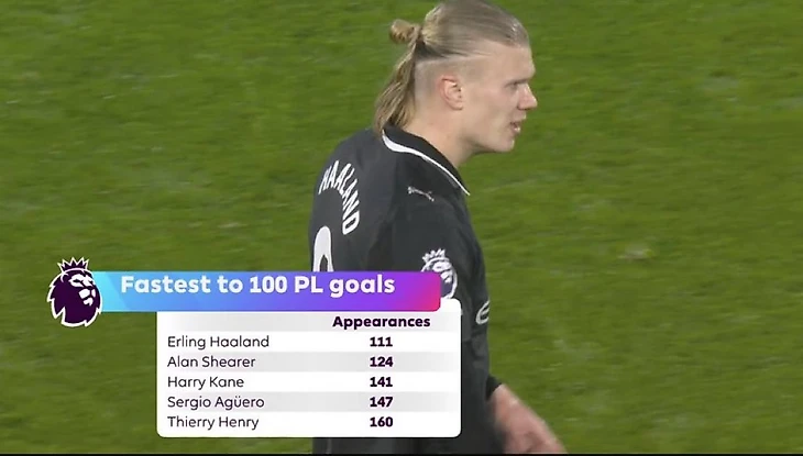 Столь солидное достижение Эрлингу покорилось всего за 111 матчей – планку в 100 голов он взял быстрее всех в истории Премьер-лиги. Ранее рекорд принадлежал Алану Ширеру, легенда свой сотый мяч в чемпионате Англии забил в 124-й игре.