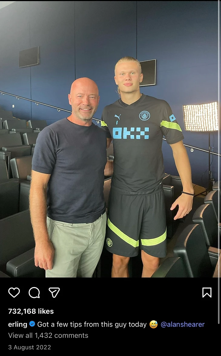 К посту Эрлинг прикрепил скриншот своей старой публикации об Алане: «Сегодня получил пару советиков от этого парня 😅».