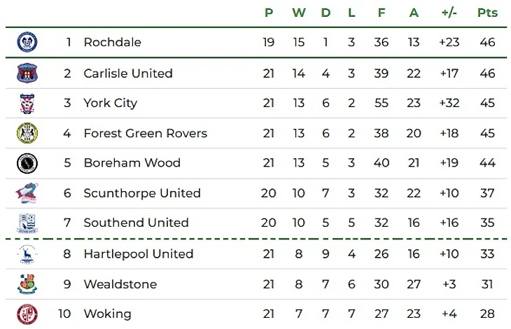 «Карлайл» — фаворит пятого дивизиона с самым дорогим составом по данным Transfermarkt. Северянам удается бороться, несмотря на очень высокую плотность (на лидерство претендуют шесть команд, а «Рочдейл» начинает отрываться). «Йорк», основной фаворит, затормозил из-за перемен на тренерской скамейке. Марк Хьюз в «Карлайле» незаменим и надежно использует опыт АПЛ и Чемпионшипа, что еще может сыграть в пользу маэстро.