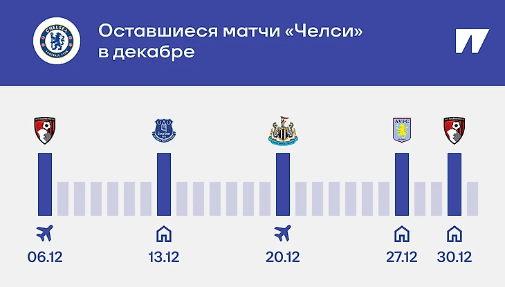А что ждет «Челси» в этом декабре? Много выездов и два матча с «Борнмутом»