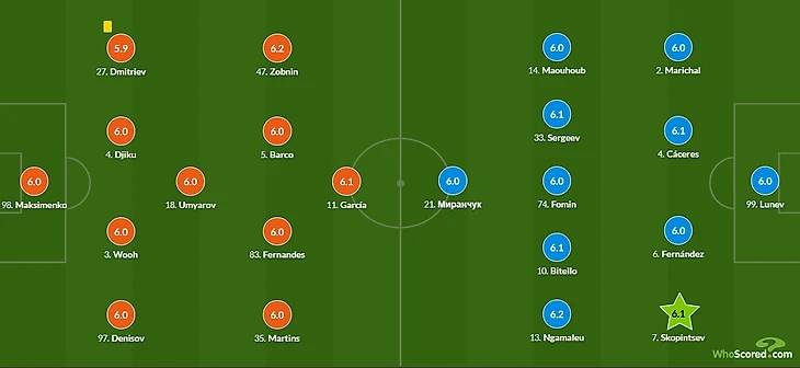 По ударам впереди «Динамо» - 10 против 8. А попадания в створ вообще - 4-1 в пользу «бело-голубых». При этом, если говорить об опасных моментах, то здесь также перевес на стороне команды Гусева. Так-то формально в этот день вообще забивало только «Динамо». Один в свои ворота, три - в чужие, из которых засчитали всего один.