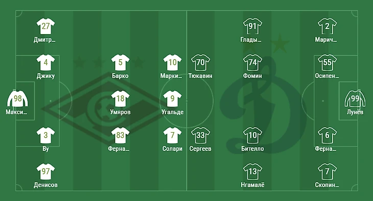«Динамо» вышел с максимально атакующей обоймой. В центре поля связка из двух «креативщиков» Фомин - Бителло. А впереди целый квартет нападения - Нгамалё и Гладышев - на флангах, плюс - два чистых форварда, Сергеев и Тюкавин.